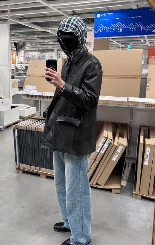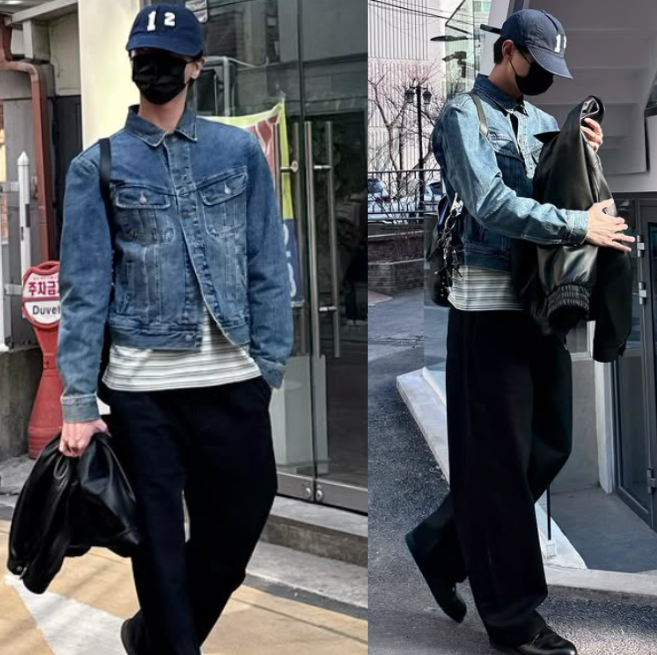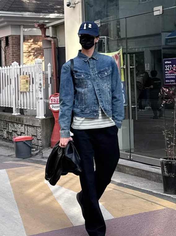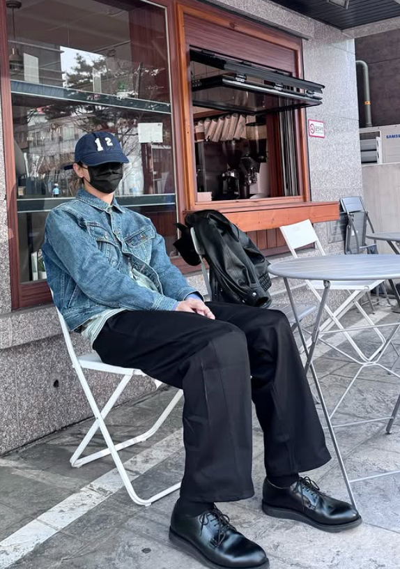 이번 룩의 중심은 은은한 워싱이 들어간 청자켓이었어요. 일반적인 데님 재킷보다 톤이 차분하고 핏도 부드러워서 전체적으로 깔끔한 인상을 줬답니다.