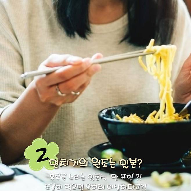면 요리를 먹을 때 나는 후루룩 소리. 일명 면치기라고 하죠. 일본 또한 면 요리를 소리 내어 먹는 것이 일반적인데요. 면발의 향과 식감을 즐기는 방식으로 여겨지고, 오히려 조용히 먹으면 ‘입맛이 없는 건가?’ 하고 오해받을 수 있답니다.