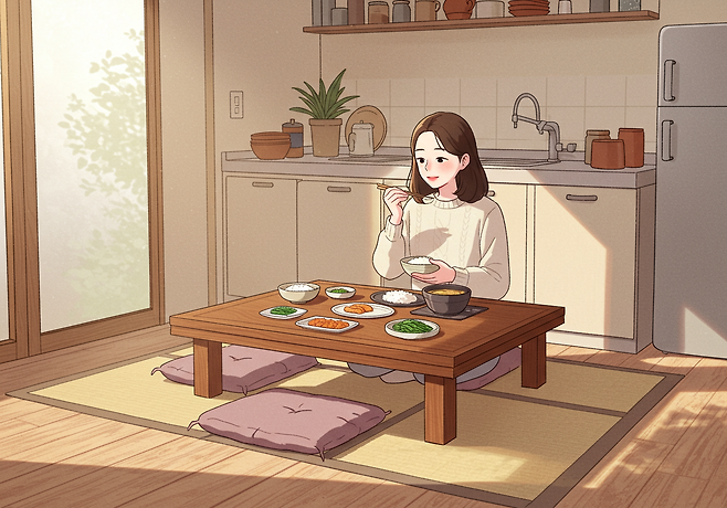 현미밥이나 된장국, 나물처럼 소화에 무리가 적은 식단을 가볍게 준비해 먹는 식입니다.