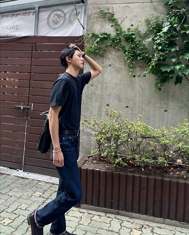 주우재가 인스타그램을 통해 공개한 근황 사진이 또다시 화제를 모았다. 깔끔한 배경의 골목길을 걷는 모습 속 그는 단순한 데일리룩조차 화보처럼 소화하며 ‘남친룩의 정석’을 보여줬다. 특히 블랙 티셔츠와 생지 데님이라는 기본 조합이지만, 그의 긴 기럭지와 모델다운 비율 덕에 단숨에 세련된 무드로 완성됐다.