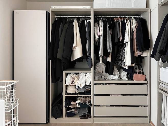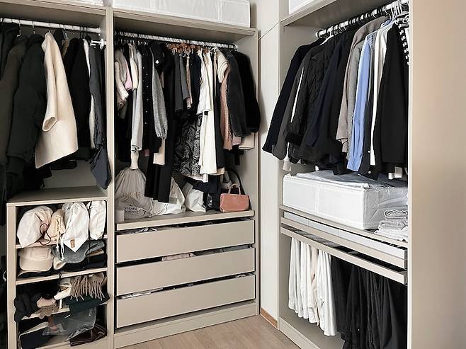 남편과 제 옷이 얼만큼 되는지 대략 알고 있다 보니 효율적인 수납이 가능한 구성을 짜는 게 가능했던 것 같아요!