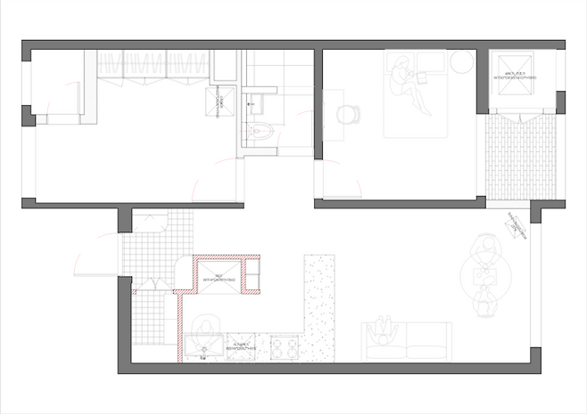 철거 후 새로운 벽체를 신설해서 현관과 주방 공간 확보 두 마리 토끼를 잡는 구조를 제안해 주셨어요. 3D로 작업해 주셨던 도면 초안을 보자마자 그때는 수정 단계를 거치기 이전이었는데도 맘에 쏙 들어버렸답니다.