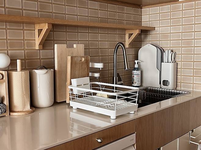 제가 설거지를 쌓아두는 것을 별로 안 좋아해서 저희 부부는 설거지를 모아서 식기세척기를 돌리기 보다 그때그때 설거지를 끝내버리는 편이에요. 그래서 식기건조대를 버리지 않고 구비하고 있답니다 :-)