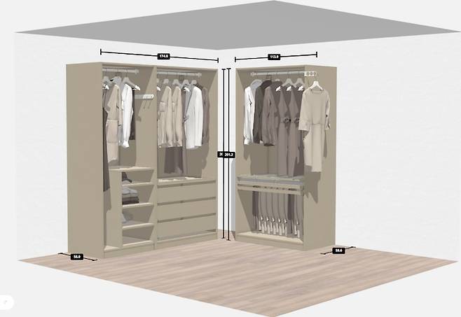 온통 새하얀 드레스룸은 원치 않았는데 마침 베이지 색상이 새롭게 출시됐더라구요! 이케아 매장에서 직접 보니 더욱 맘에 들어서 차분한 베이지 색상으로 결정하게 됐어요 :-)
