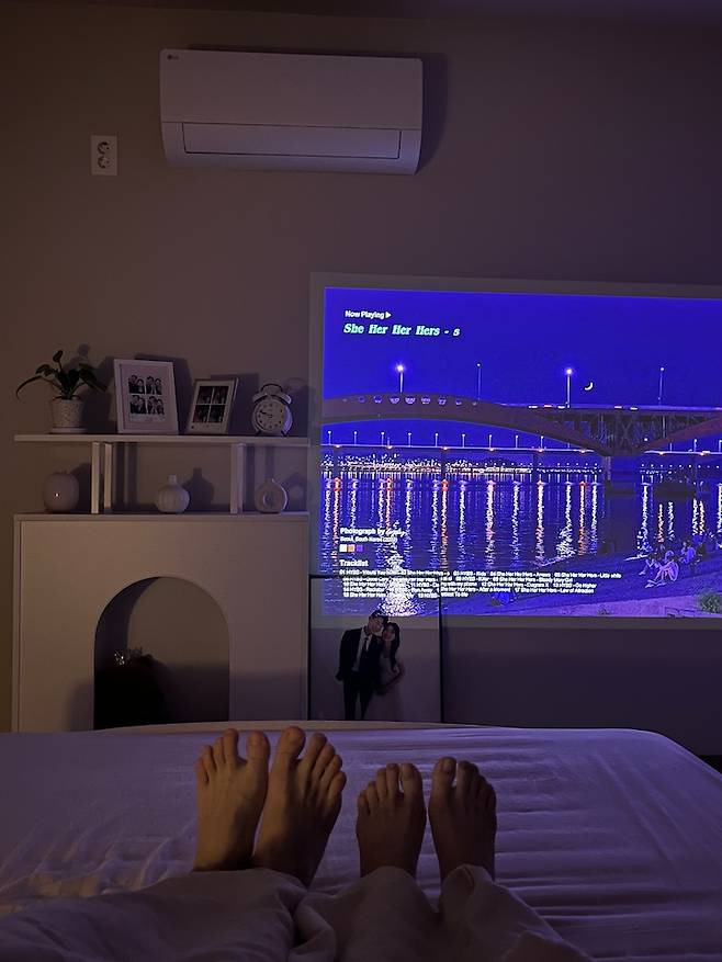 이렇게 침실에서도 빔 프로젝터를 켜고 작은 영화관에 온 분위기를 낼 수 있기 때문이에요 >_<