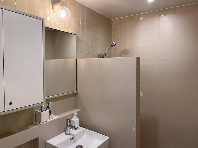 샤워하는 공간과 세면하는 공간의 분리 그리고 청소의 편의성을 위해 욕실이 작은 편임에도 꼭 챙겨가고 싶은 요소였답니다.