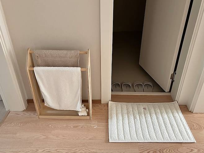 발 매트는 먼지가 잘 보이는 것을 감수하고 흰색으로 선택했는데, 테리 재질이라 고슬고슬해서인지 잘 지저분해지지도 않고 물기 흡수도 잘 되는 편이라서 만족해요!