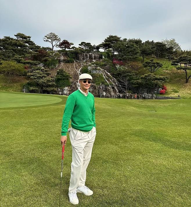 초여름의 푸른 필드를 배경으로, 배정남이 선보인 그린 니트 스타일링이 골프 마니아와 패션 팬들 사이에서 눈길을 끌고 있다. 인스타그램에 공개된 해당 사진은 폭포가 흐르는 자연친화적인 골프장을 배경으로, 단정하면서도 발랄한 골프웨어 룩이 완벽한 조화를 이루고 있다.