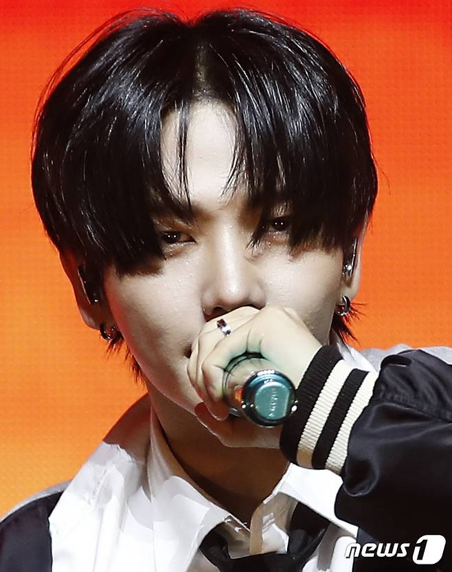 (서울=뉴스1) 권현진 기자 = 그룹 보이넥스트도어(BOYNEXTDOOR) 명재현이 15일 서울 광장동 예스24 라이브홀에서 가진 두 번째 미니앨범 'HOW?' 쇼케이스에서 타이틀 곡 'Earth, Wind & Fire'를 선보이고 있다. 2024.4.15/뉴스1