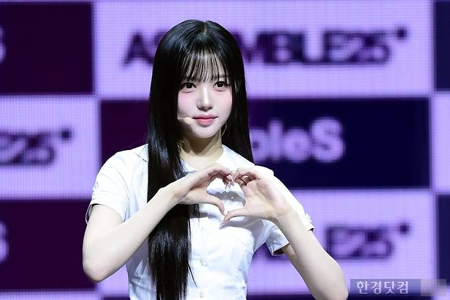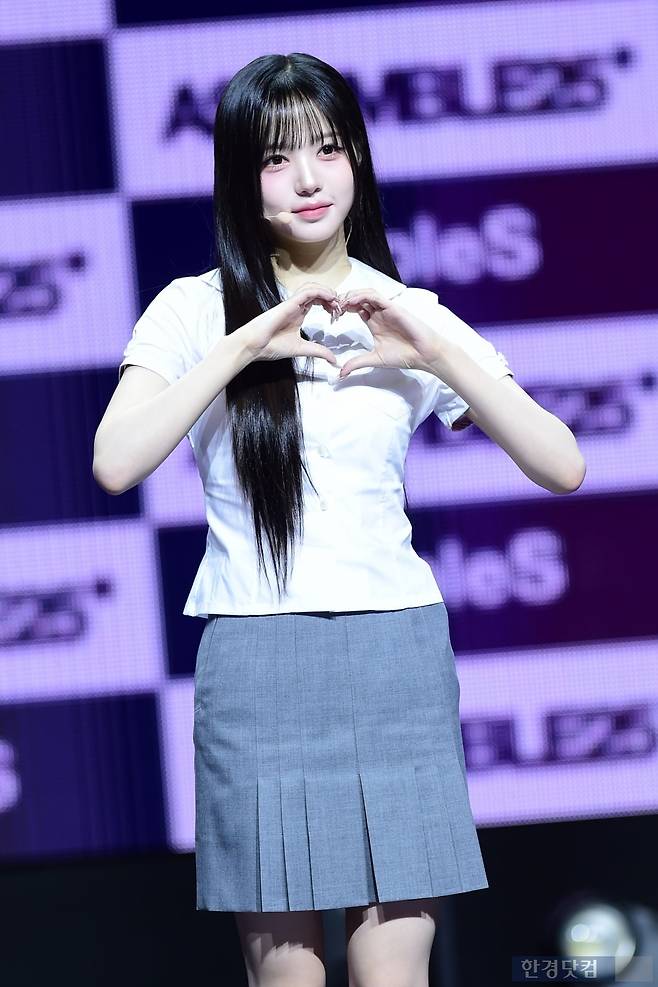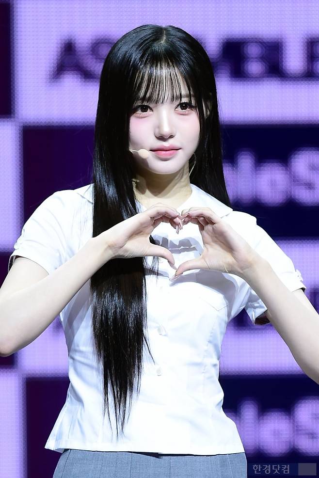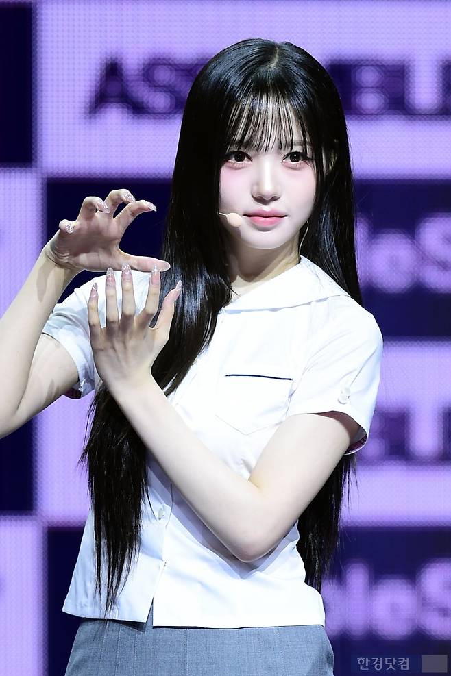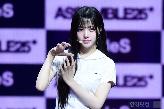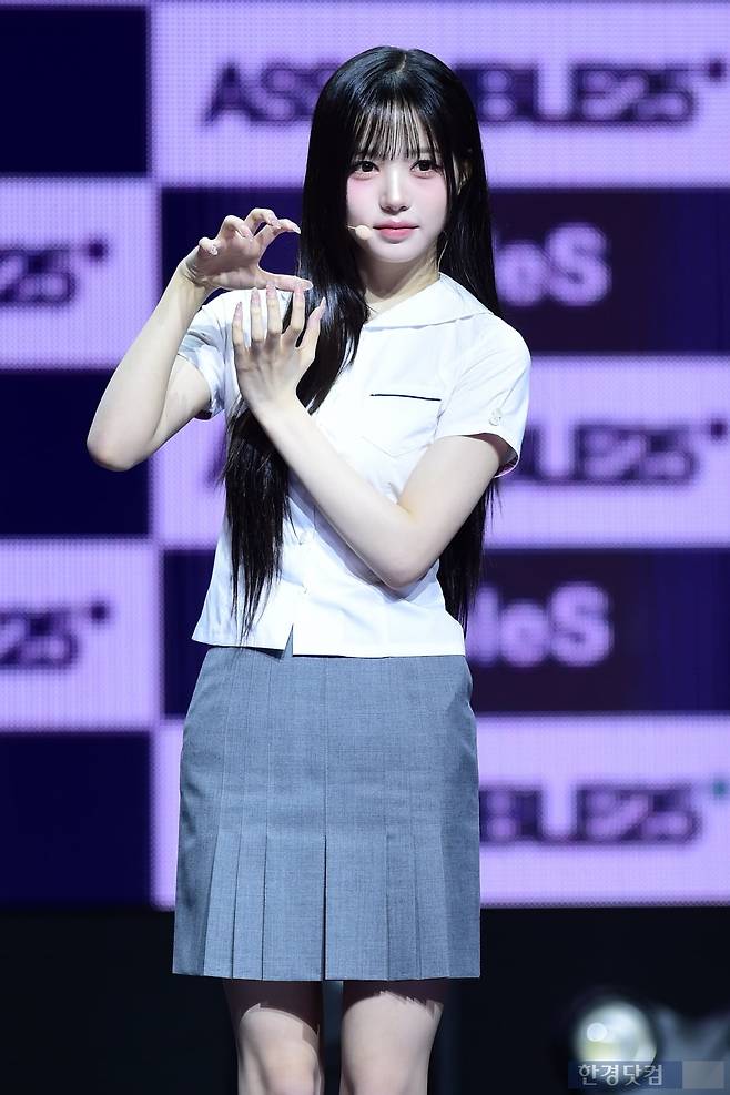 그룹 트리플에스(tripleS) 김채원이 12일 오후 서울 한남동 블루스퀘어에서 열린 완전체 디멘션(DIMENSION) 새 앨범 'ASSEMBLE 25(어셈블25)' 발매 기념 쇼케이스에 참석해 포토타임을 갖고 있다.