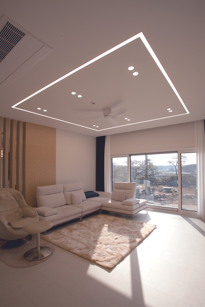 당초 계획한 주택 구조는 철근콘크리트조였다. 반면, 위드제이건축은 경량 목구조로의 전환을 제안했다. 건축주 부부는 업체의 전환 권유 사유가 타당하다고 생각했다. 목구조는 비용 효율성과 구조 안정성을 동시에 만족시키고, 3m의 높은 층고를 통해 단층임에도 개방감을 극대화할 수 있다는 점에 수긍이 간 것이다. 건축주 아내분은 “목구조는 따뜻한 느낌과 경제성을 모두 충족시켰다”며 당시 선택에 만족감을 표했다.