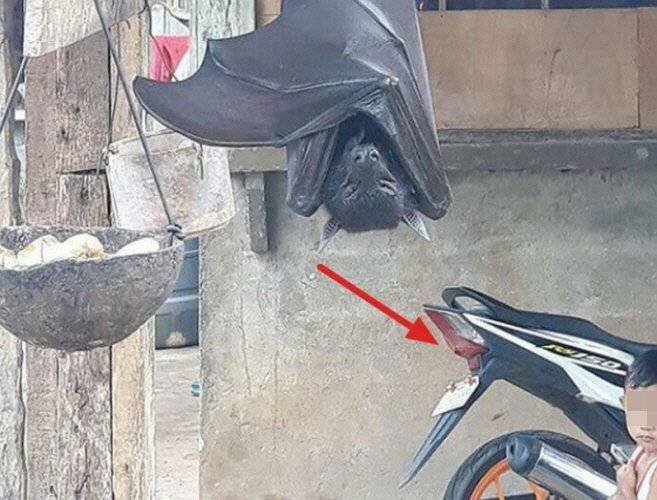 생김새만 봤을 때는 박쥐처럼 보이기도 하는데요. 그러나 박쥐라기엔 몸집이 너무나도 커 보입니다. 심지어 사진에 함께 나온 오토바이가 작아 보일 정도였죠.