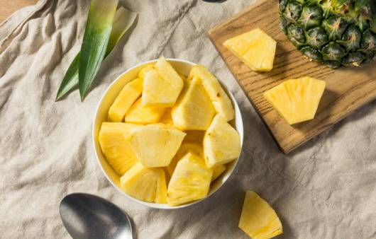 파인애플의 식이섬유와 식초의 유기산이 장내 환경을 정돈해 배변 활동을 원활하게 합니다.