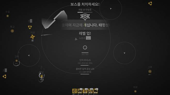 게임은 하나의 무기로 시작되며, 전투 중 획득한 전리품과 아이템을 통해 다양한 강화 효과를 적용할 수 있다. 회전하는 칼날, 튀는 탄환, 표적 유성 등 개성 있는 무기 강화가 가능하며, 각 스테이지마다 독특한 타자 패턴을 요구하는 보스전이 등장해 몰입도를 높인다.