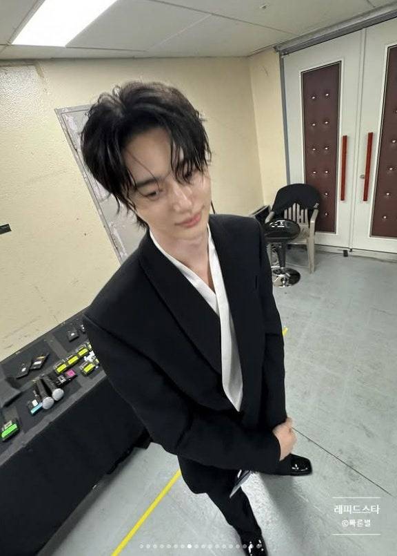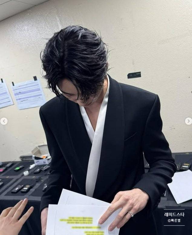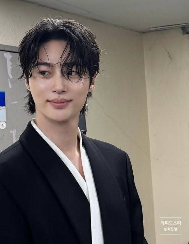특히 190cm의 큰 키와 완벽한 비율은 그의 수트핏을 더욱 돋보이게 만들었고, 무대 위에서도 압도적인 존재감을 과시했습니다. 단정한 헤어스타일과 자연스러운 포즈는 시크하면서도 친근한 매력을 동시에 보여주며 현장을 빛냈습니다.