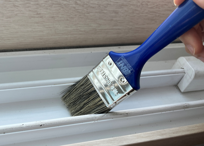 넓적한 붓을 활용하면 창틀 먼지를 수월하게 제거할 수 있습니다. 붓은 공구용이나 미술용 등 용도에 상관없이 창틀 사이즈에 맞는 것을 사용하시면 돼요.