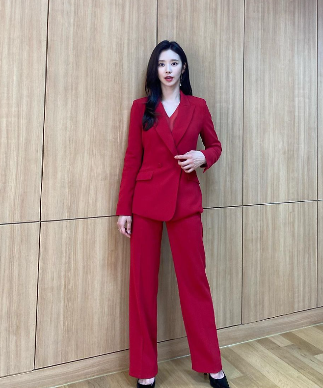 또한, 레드 컬러의 슈트를 입고 자신감 넘치는 아우라를 뽐냈으며, 드레시하면서도 격식 있는 코디를 연출했습니다.