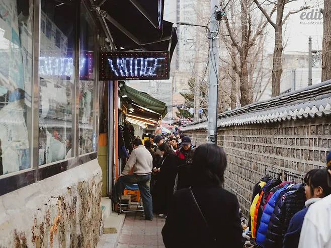 2010년대 중후반, 동관왕묘 근처 상가건물에 빈티지 패션 아이템을 전문적으로 다루는 셀러들이 정착하기 시작하며, 노점 좌판과 상설매장이 공존하는 오늘의 동묘 빈티지씬이 만들어졌다. 여러분도 모두 알고 있듯, 데프콘이 데일리룩을 꾸미고, 지드래곤이 예능을 찍고, 거물 패션 디자이너 키코 코스타디노브가 인스타그램에 동묘 패션을 샤라웃하고, 입소문이 또 다른 입소문을 모은 끝에! 지금은 한국을 대표하는 플리마켓으로 이름을 널리 떨치고 있다