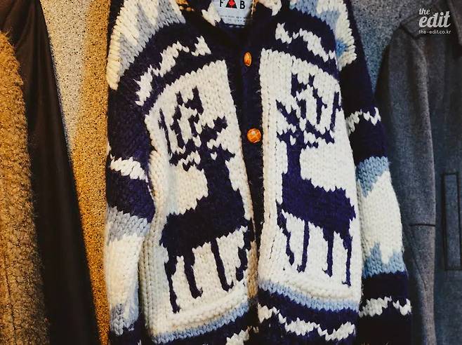 예컨대 ‘코위찬(cowichan)’은 어떨까. 동묘시장 같은 곳에서 찾아보면 좋을 패션 아이템 중 하나라 생각한다. 옷의 기원은 북아메리카 원주민이 짠 스웨터로 알려져 있으며, 색과 문양이 아름다운 외투다. 많은 패션 브랜드가 옛날 옷에서 발견한 니트 패턴이나 그래픽 디자인에 영감을 얻어 신제품을 출시하고 있다. 코위찬을 비롯한 빈티지 니트웨어는 전세계 플리마켓에 쏟아지듯 유통되고 있다.