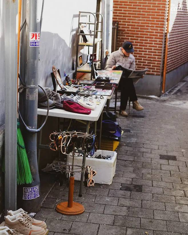 국가유산 근처 허름한 골목길이 벼룩시장으로 주목받기 시작한 건 2010년대 초였다. DDP 건설과 동대문 운동장 철거의 영향을 받았다. 동대문 운동장 부지에서 장사하던 만물상들이 DDP 건립 후, 서울시에서 마련한 황학동 서울풍물시장으로 자리를 옮겼는데, 상설시장에 들어가지 않은 셀러들이 동관왕묘 담벼락 근처에 노점 좌판을 깔고 중고품을 팔기 시작한 것이다.