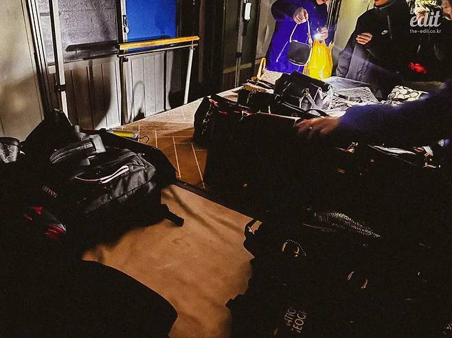 새벽 동묘시장의 장점은 브랜드 스펙트럼이 넓다는 것. 빈티지로 여길 만한 중고품이 많았다. 특히 의류와 잡화는 명품 브랜드 라벨이 달린 물건부터 국내외 편집샵에서 다루는 디자이너 브랜드 컬렉션까지 의외성 넘치는 물건이 등장했다. 빈티지 샵 오너로 짐작되는 사람들이 재빠른 손놀림으로 정가품 여부를 체크하고, 셀러와 당연하다는 듯 흥정에 나선다.