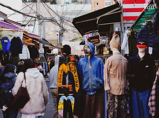 2010년대 중후반, 동관왕묘 근처 상가건물에 빈티지 패션 아이템을 전문적으로 다루는 셀러들이 정착하기 시작하며, 노점 좌판과 상설매장이 공존하는 오늘의 동묘 빈티지씬이 만들어졌다. 여러분도 모두 알고 있듯, 데프콘이 데일리룩을 꾸미고, 지드래곤이 예능을 찍고, 거물 패션 디자이너 키코 코스타디노브가 인스타그램에 동묘 패션을 샤라웃하고, 입소문이 또 다른 입소문을 모은 끝에! 지금은 한국을 대표하는 플리마켓으로 이름을 널리 떨치고 있다