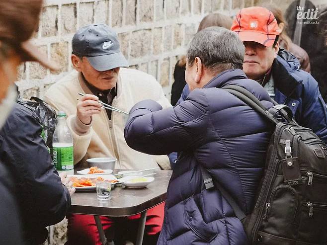 동묘를 돌다 배가 고플 때, 무엇을 먹으면 좋을까. <무한도전>같은 TV 예능을 통해 널리 알려진 먹거리는 ‘1천 원 토스트와 믹스커피’ ‘튀김과 호떡’ ‘꽈배기와 도나쓰’ 등이 있다. 핑거푸드가 많다. 이들은 저렴한 가격에 자극적인 맛을 지닌 간식이긴 하지만, 솔직히 업장 위생상태가 나쁜 편이라 호불호가 갈리는 먹거리다. 어쩌다 한두 번 경험 삼아 먹는 별미 정도로 생각하는 게 좋다.