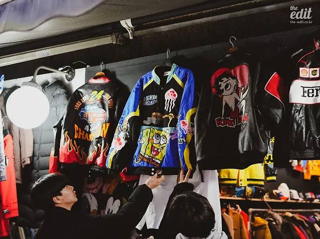 옷 가게에서는 가죽, 데님, 나일론처럼 시간이 지나도 물성이 크게 변하지 않는 소재로 만든 의류를 주목하는 게 좋다. 행거에 손가락을 감고 옷을 쓱쓱 넘기며 동묘 패션을 오감으로 느껴보자. 동묘 상가 속 빈티지 샵 물건은 좌판에 깔린 물건보다 가격이 세긴 하나, 사장님의 손길을 거친 물건이라 컨디션이 보장되는 경우가 많다. 말 그대로 벼룩이 붙어있을지 모를 노점 좌판 속 물건보다 깔끔하고 양호하다.
