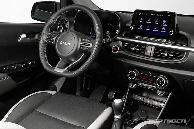 실내에는 인조 가죽 시트를 기본으로 열선 기능을 지원하는 D 컷 스티어링 휠이 적용됐다. 신형 모닝 GT 라인 유럽 기준 3기통 1.0리터 및 1.2리터 가솔린 자연흡기 엔진으로 운영된다. 1.2리터 엔진의 경우 5단 자동화 수동변속기(AMT)가 조합돼 최고출력 84마력을 발휘한다.
