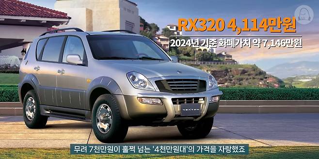 '대한민국 1%'라는 도발적인 슬로건과 함께 출발한 렉스턴은 선대 무쏘가 그러했듯 기존 SUV들과 결을 달리하는 새로운 기준을 제시하면서 국내 SUV 시장에서 독보적인 위치를 차지했습니다. 출시 초 판매 가격은 4륜구동 수동 변속기 기준 2,553만 원부터 시작, 이후 가격 접근성을 높인 다양한 트림을 추가로 선보이긴 했지만 전반적으로 높은 가격대를 형성했는데, 특히 3.2L 가솔린 모델은 현재 가치로 무려 7천만 원이 훌쩍 넘는 4천만 원대의 가격을 자랑했죠.