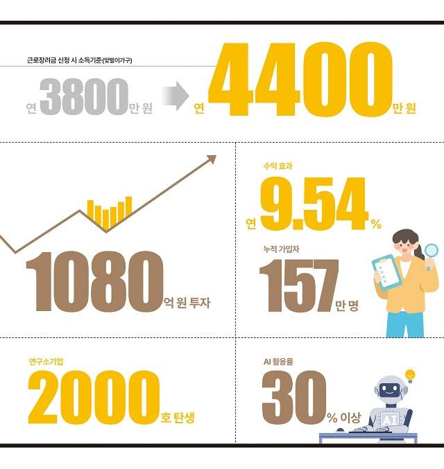근로장려금 신청 시 맞벌이가구 소득 기준 상향, 청년도약계좌 기여금 확대, 지역산업활력펀드 투자 시작, 연구소기업 2000호 탄생, 유통산업의 AI 활용률 제고 등 주요 정책 변화를 '숫자'로 살펴봅니다.