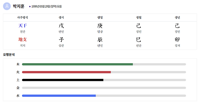 박지훈 사주로 보는 인생 흐름 & 연애운