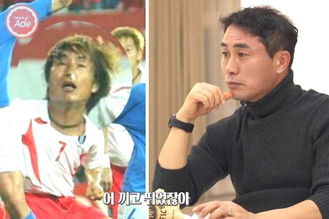 김태영은 오버헤드킥으로 프로 경기에서 처음 골을 넣었는데요. 당시 골을 넣은 후 떨어지며 허리를 다쳤고, 이에 그를 걱정하던 아내와 비로소 이어질 수 있었다고 합니다.