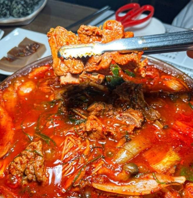 대표 메뉴는 ‘떠먹는 갈비찜’이다. 일반적인 갈비찜과 달리 자작한 국물이 특징이며, 찌개처럼 끓이면 끓일수록 깊고 매콤한 맛이 살아난다. 고추기름이 감도는 국물 위에 건더기를 푹 담아 한입에 넣으면 특유의 화끈한 맛이 입안을 사로잡는다.