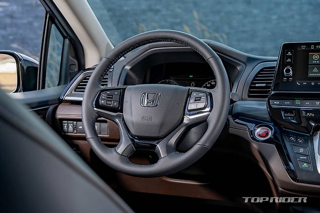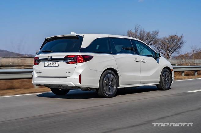 일상주행에서는 6기통 가솔린 특유의 부드럽고 잔잔한 엔진음이 매력적이다. 전동화나 과급장치가 추가되며 6기통 고유의 장점이 많이 희석됐는데, 혼다 오딧세이는 전통적인 자연흡기 6기통 엔진의 구성을 고집하고 있다. 저회전에서도 충분한 토크가 나오는 SOHC 엔진이 잘 어울린다.