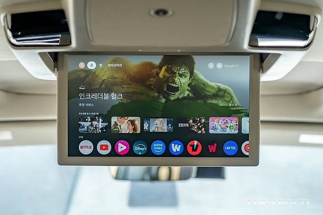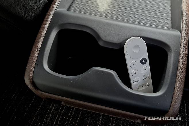 2열에서는 새롭게 단장한 리어 인포테인먼트 시스템이 눈에 띈다. 천장에서 내려오는 타입으로, 2열 시트를 뒤로 약간 눕히고, 블라인드를 올리면 좋은 시청 자세가 만들어진다. 테더링을 통해 유튜브나 OTT를 시청할 수 있는데, 탑건 매버릭 같은 영화를 시청해보면 사운드가 상당히 좋다.