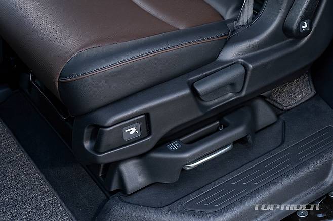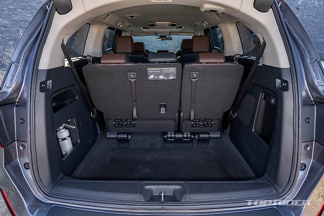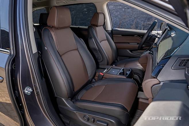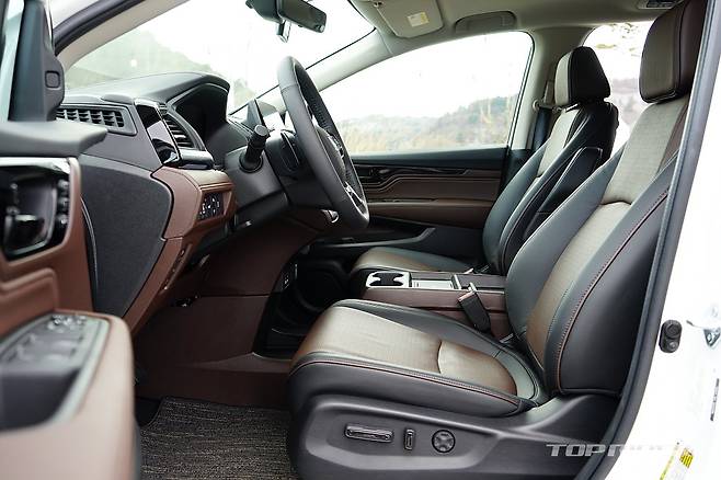 운전석에서의 시트포지션은 안정적이다. 시트만 껑충한 일부 대형 SUV와 달리 바닥이 높은 세단과 유사한 크로스오버에 가까운 구성이다. 전측방 시야가 좋은 것과 함께 안정적인 시트포지션은 장거리 주행시 피로감을 줄여주는 요소다. 다만 조수석 높낮이가 조절되지 않는 점은 아쉽다.