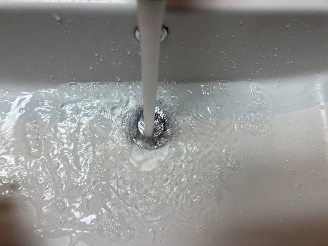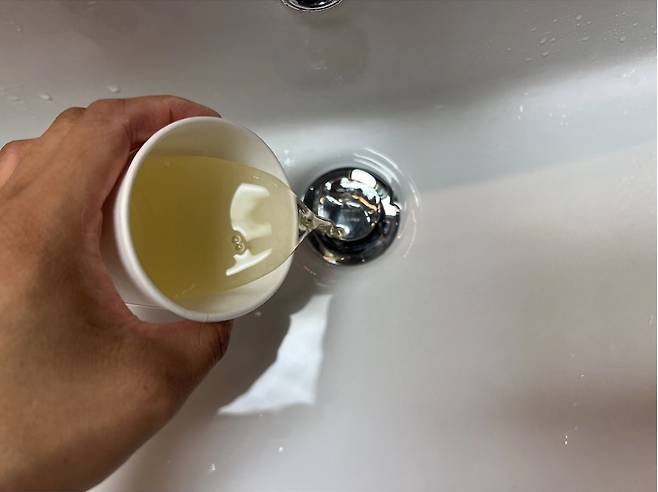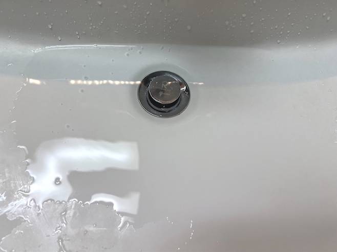 2. 끓인 물을 세면대에 부어주는데 빠르게 흘려버리지 말고 천천히 흘려보내줍니다.