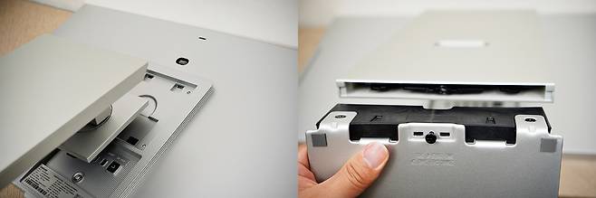 VESA 마운트 호환성을 지원하여, 벽걸이나 모니터 암 설치가 가능합니다. 기본 제공되는 스탠드는 받침 부분의 나사 1개만 연결하면 간단히 설치 할 수 있습니다.