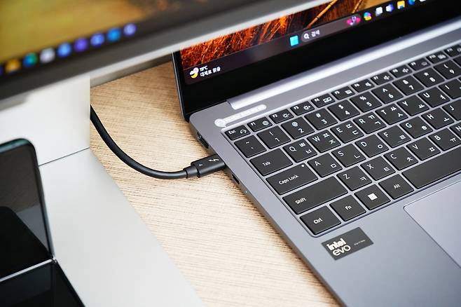 모니터 후면의 Thunderbolt 4으로는 최대 90W 충전 및 40Gbps 데이터 전송이 가능해 노트북, 스마트폰 고속충전은 물론 외장하드, 카드리더기 연결을 하여 빠른 자료전송이 가능합니다.
