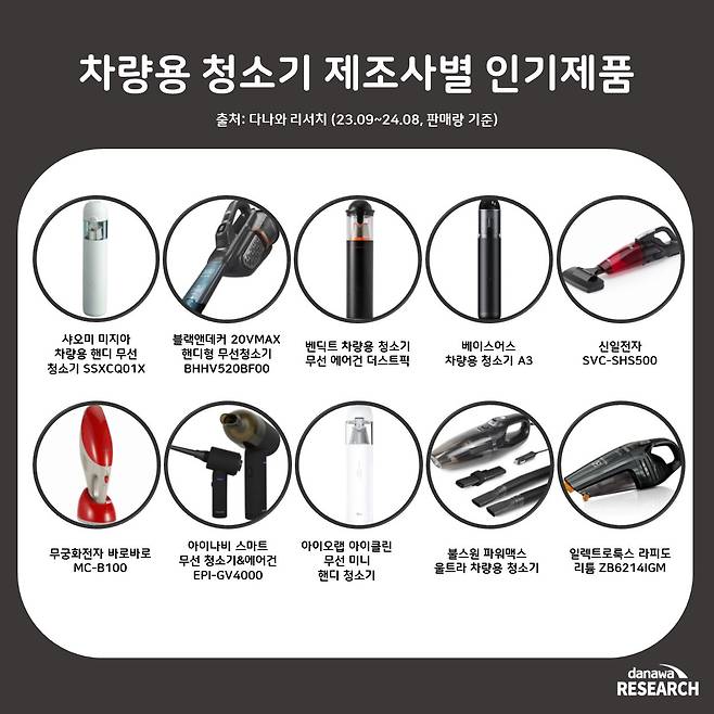 차량용 청소기 제조사별 인기 제품을 살펴보자.