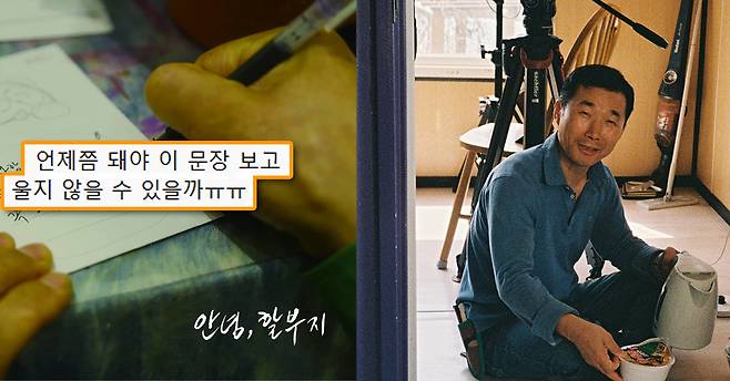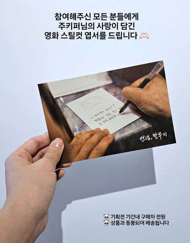 당시 많은 사람들이 “덤덤하고 간결해서 더욱 뭉클하다”, "너를 두고 간다는 문장 안에 할부지의 온갖 심정들이 함축돼 있는 게 느껴진다"며 눈시울을 붉혔는데요. 바로 이 편지를 쓰는 장면을 담은 엽서가 굿즈와 함께 전달돼 예비 관객들에게 따듯한 감동을 선사할 예정입니다.