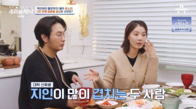 방송된 채널A '절친 토큐멘터리 4인용식탁'에서는 배우 윤소이가 남편 조성윤과 함께 출연해 지창욱이 사랑의 오작교 역할을 했다고 말했습니다. 윤소이, 조성윤 부부의 첫 만남과 러브스토리가 공개됐습니다. 윤소이와 조성윤은 대학 선후배로 만났다고 말했습니다.
