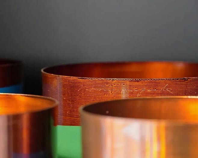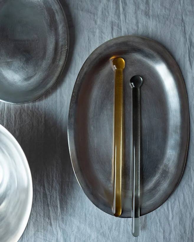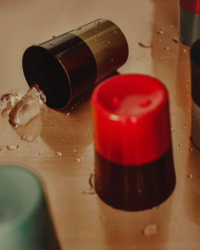 아이스 음료를 플라스틱 컵에 마시면 맛이 없는 것 같고, 그렇다고 얇은 유리잔에 담자니 쓸 때마다 아찔하다. 편하게 쓰려고 두툼하고 투박한 텀블러에 먹으면 또 멋이 없게 느껴진다. 허명욱 작가의 옻칠컵은 그 사이에서 적당히 타협점을 찾은 제품! 동 소재라 깨질 위험이 적고, 아이스 음료를 담았을 때 차가운 온도가 오래 유지된다. 특히 손에 쥐었을 때 느껴지는 적당한 무게와 표면의 온도 덕분에 음료 마실 때의 경험이 촉각까지 확장된다.