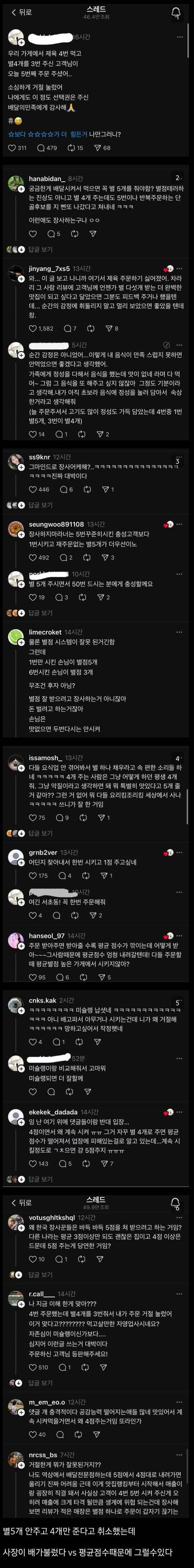 별 4개라도 꾸준히 주문한 단골 고객인데
