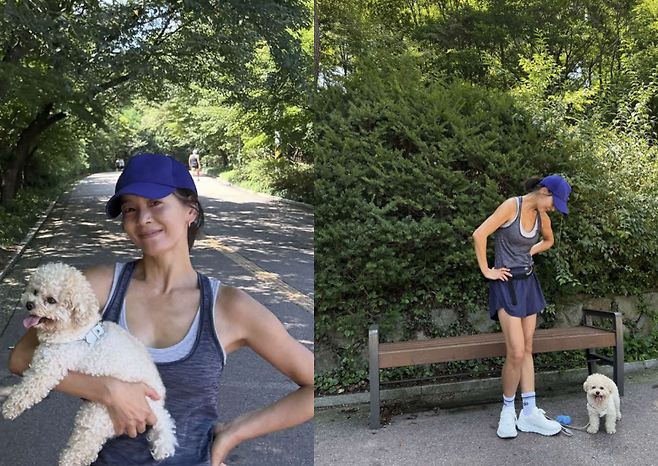 배우 정혜영(51)은 최근 자신의 SNS에 “오전 남산 둘레길 1회전 7km”라는 글과 함께 근황을 공개했다. 사진 속 정혜영은 남편 션(52)과 함께 산책 겸 러닝을 즐기며 여유로운 일상을 전했다.