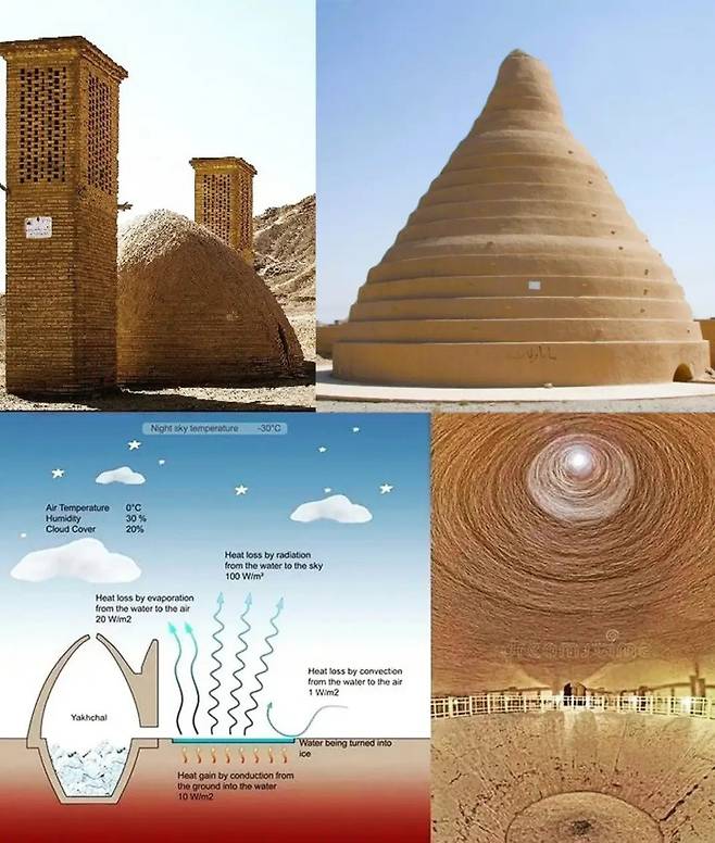 가장 인상적인 고대 냉장고는 페르시아의 야크찰일 것이다. 기원전 400년경에 개발된 이 뾰족한 돔은 더운 사막 기후에서도 얼음을 유지할 수 있도록 설계되었다. 인근 수로에서 나온 물이 이 구조물 아래 깊은 모래 속으로 흘러들어가 시원하게 유지되었다.