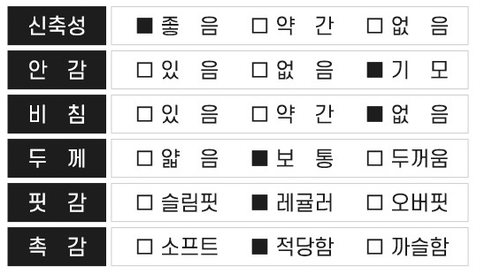 스포츠웨어 원단으로 적합합니다.