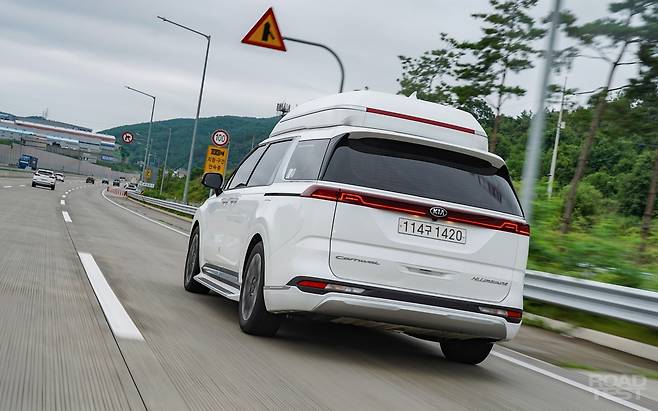 휴게소에 들러 직접 운전대를 잡았다. 고속도로에서 점차 속도를 올리니 땅을 짓누르며 달리는 능력이 돋보인다. 시속 110㎞ 정속 주행은 물론, 그 이상 속도에서도 상당히 안정적이다. 이전 세대에서 느꼈던 약간의 헐거움을 완전히 지웠다. 공차중량은 2,145㎏. 토요타 시에나 하이브리드 2WD와 똑같은데, 묵직한 감각은 카니발이 미세하게 더 나았다.