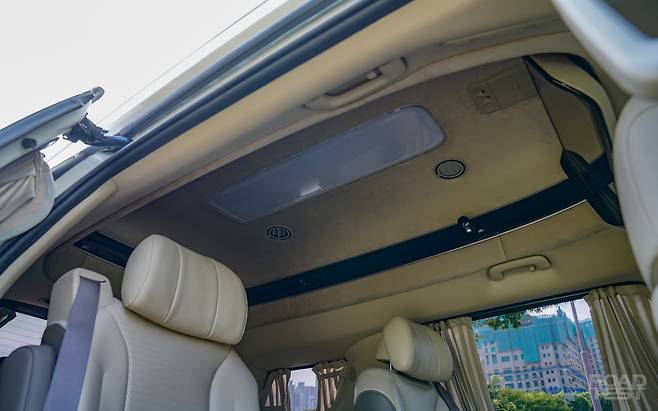 두 번째 단점은 바람 소리. 높은 지붕 탓에 바람 맞는 면적이 늘어나, 어느 정도 풍절음은 예상하고 있었다. 내 짐작은 절반만 맞았다. 머리 위는 잠잠했다. 오히려 A 필러 부근 바람 소리가 거슬렸다. 한 겹 일반 유리를 쓴 2열 창문 소음도 운전석까지 들이쳤다. ‘리무진’이라는 이름표를 달기엔 다소 빈약한 방음 성능이다. 별도로 방음 시공을 하자니 예산이 걱정이다.